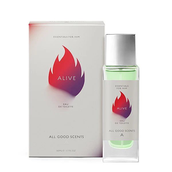 Alive di All Good Scents è una fraganza della famiglia olfattiva aromatica fougère per uomo. Lanciata nel 2014, questa composizione è stata creata dal profumiere Rajiv Sheth. La piramide olfattiva si sviluppa con note di testa di lavanda, rosmarino e limone; un cuore composto da scabiosa, sandalo e cedro; e un fondo che rivela muschio di quercia, ambra bianca e fava tonka.