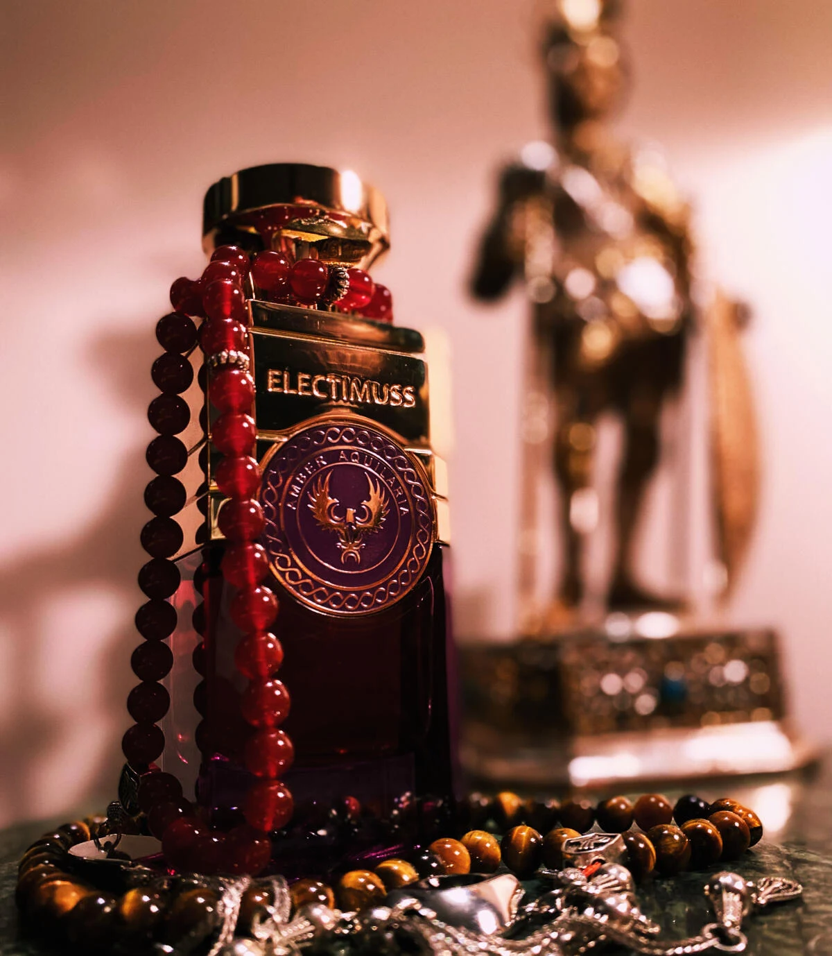 Amber Aquilaria di Electimuss è una fraganza della famiglia olfattiva orientale legnosa, per uomo e donna. Lanciata nel 2014, questa composizione presenta un cuore di bergamotto; un cuore formato da cognac e rosa; e un fondo che evoca legno di oud, ambra, sandalo e vaniglia bourbon.