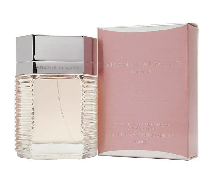 Aramis Always for Her di Aramis è una fraganza della famiglia olfattiva floreale muschiata legnosa per donne. Lanciata nel 2006, questa composizione presenta nelle note di testa la rucola e il mandarino. Il cuore della fraganza rivela il gelsomino, l'ibisco e il magnolia, mentre le note di fondo si dispiegano con latte, incenso, legni esotici e ladanum.