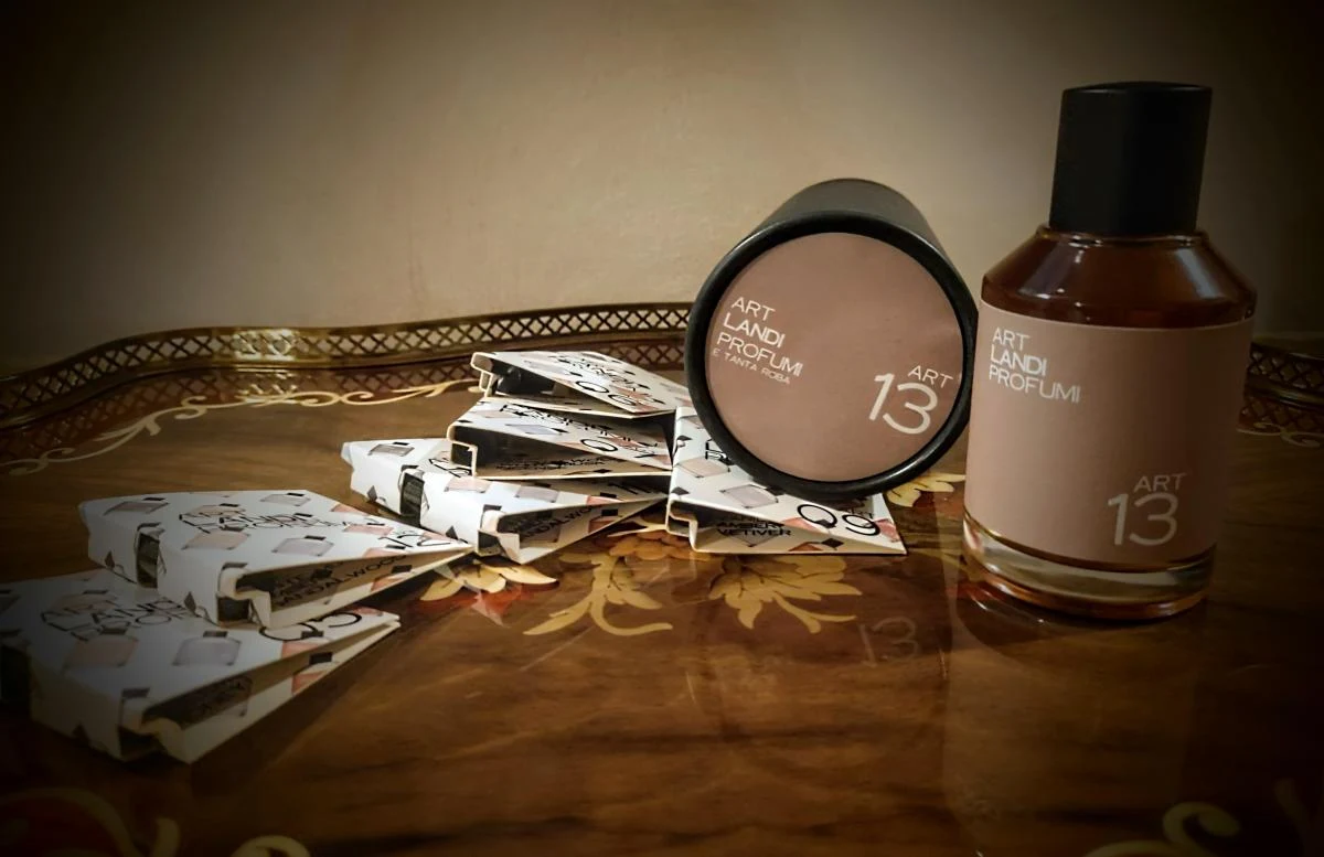 Art 13 E Tanta Roba di Profumi d'Art (Art Landi Profumi) è una fraganza della famiglia olfattiva floreale, adatta a uomini e donne. Lanciata nel 2022, questa composizione è firmata da Arturetto Landi. Le note di testa vedono il legno di oud intrecciarsi con lo zafferano e l'uva spina nera, conducendo a un cuore dove il legno di oud, il miele e la rosa creano un'atmosfera calda e avvolgente. La scia finale è definita da una combinazione di legno di oud, cioccolato e sandalo.