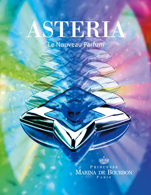 Asteria di Princesse Marina De Bourbon è una fraganza della famiglia olfattiva floreale muschiata legnosa per donne. Lanciata nel 2003, questa composizione presenta una piramide olfattiva che inizia con note di testa di prugna e ginepro; sviluppa un cuore di peonia, chiodi di garofano e rosa; e si posa su un fondo di ambra, sandalo, muschio e cedro. La creazione è opera della profumiera che ha dato vita a questa preziosa essenza.