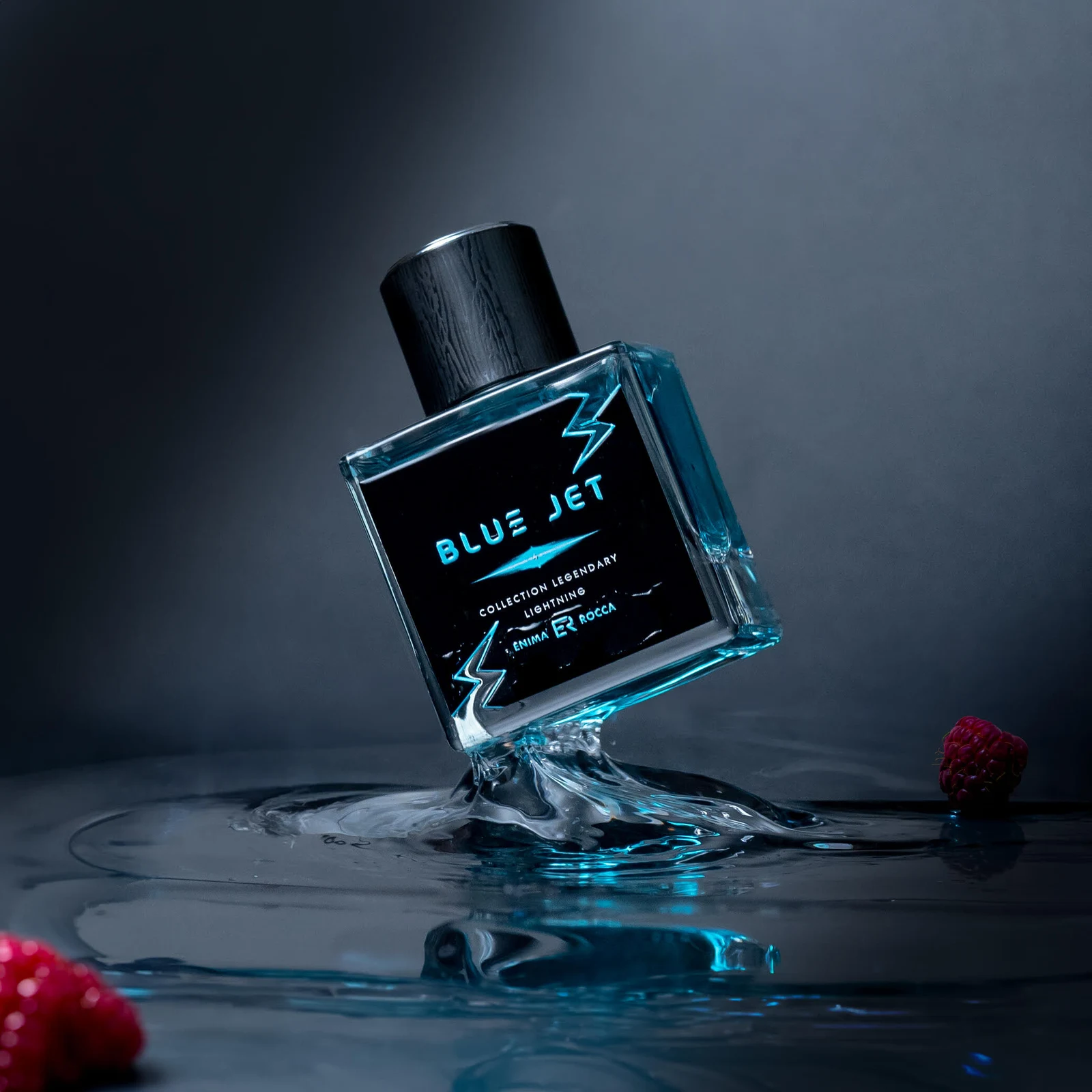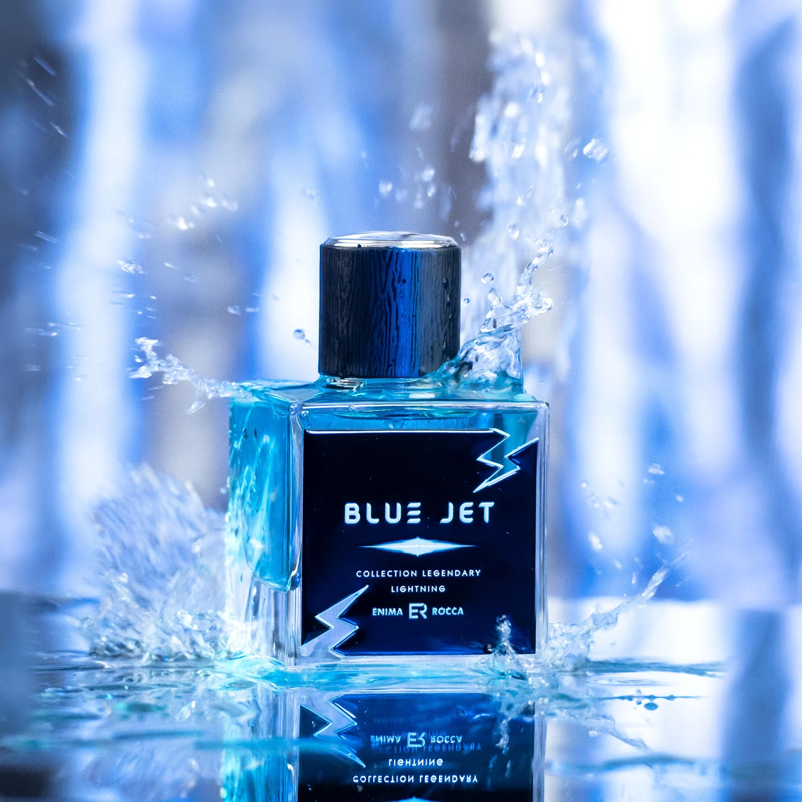 Blue Jet di Enima Rocca è una creazione olfattiva della famiglia floreale-fruttata, pensata per uomo e donna. Questa nuova fraganza, lanciata nel 2025, è stata firmata dal profumiere Touficq Redouane. La sua struttura olfattiva si apre con note di testa vibranti di arancia, pera e passion fruit; il cuore rivela un'armonia di rosa, litchi, fragola e lampono; mentre la base si posa su un fondo caldo e avvolgente di ambra, muschio e vaniglia.
