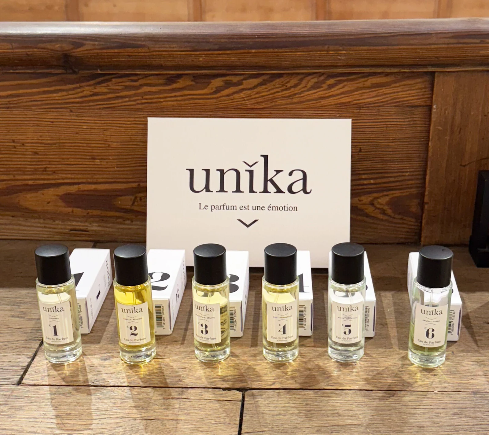 c 6 – Santal Tabac di Unika è una creazione olfattiva della famiglia orientale legnosa, pensata per uomini e donne. Questa nuova fraganza, lanciata nel 2025, è stata composta da Véronique Stambouli. La sua struttura si sviluppa con un cuore di pepe rosa e incenso; un cuore che evoca foglie di tabacco, cedro e note fruttate; e un fondo caldo e persistente di sandalo, vaniglia e ambra.