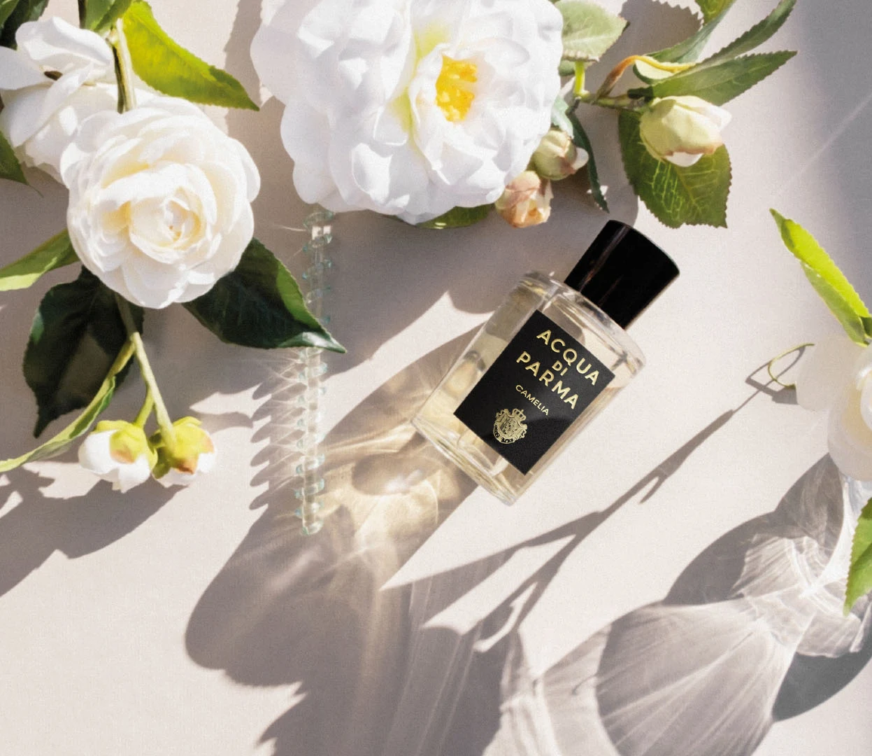 Camelia Eau de Parfum di Acqua di Parma è un profumo della famiglia olfattiva floreale, adatto a uomini e donne. Lanciato nel 2019, questa composizione è stata creata dalla profumiera Joëlle Lerioux Patris. All'apertura, bergamotto di Calabria, mandarino giallo, pepe rosa e cardamomo offrono un inizio vibrante e speziato. Il cuore rivela l'essenza floreale della camelia, accompagnata da gelsomino sambac e statice, mentre la base si fissa con un fondo caldo e legnoso di ambra e benzoino.