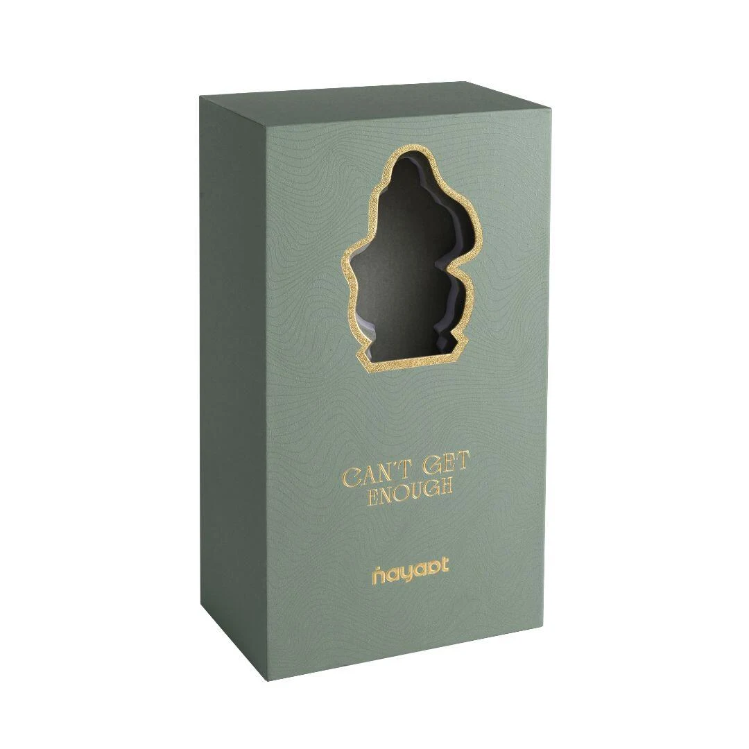 Can't Get Enough di Nayaat è una fragranza della famiglia olfattiva ambrata-aromatica, unisex. Questa fragranza è nuova. Can't Get Enough è stata lanciata nel 2025. Le note di testa sono mirtilli neri, limone, pera e bergamotto; le note di cuore sono cardamomo e geranio; le note di fondo sono un accordo goloso, sandalo, vaniglia e cedro.
