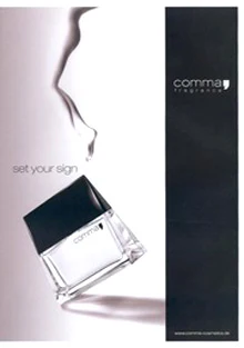 Comma di Comma è una fragranza della famiglia olfattiva floreale muschiata legnosa per donne. Lanciata nel 2004, questa composizione presenta nelle note di testa ribes nero, bergamotto e galbano; nel cuore, iris, ciclamino (violetta persiana), gelsomino e nardo; e nel fondo, muschio bianco, sandalo, palissandro, cedro e ambra.
