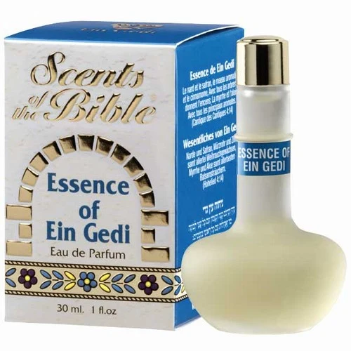 Essence of Ein Gedi di Ein Gedi è una fraganza per la famiglia olfattiva femminile. Le note di testa sono palissandro e giglio dei valli (mughetto); le note di cuore sono gelsomino, miele, acacia, iris e viola; le note di fondo sono legni bianchi, sandalo, elemi, vaniglia, tabacco, mirto, chiodi di garofano, pistacchio e ambra.