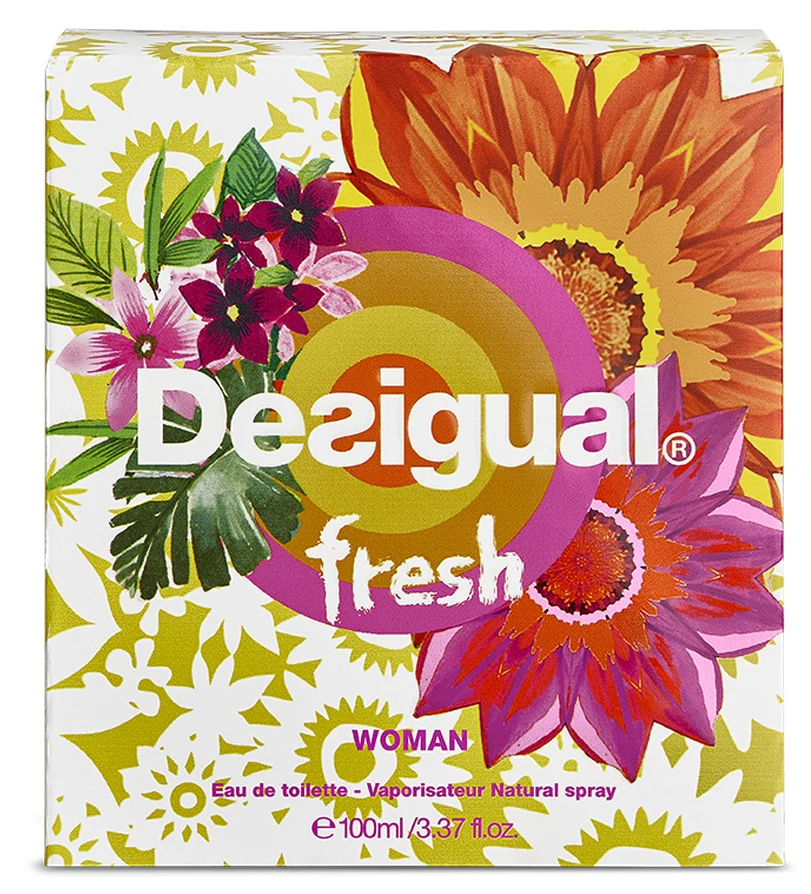 Fresh di Desigual, lanciata nel 2015, è una fraganza della famiglia olfattiva floreale ambrata legnosa per donne. La profumatrice dietro questa composizione è Sonia Constant. Le note di testa sfoggiano un freschezza vibrante con limone, lime aspro, yuzu, frutti e menta; il cuore rivela un'eleganza floreale e fruttata con fiore di loto, mela verde e magnolia; mentre le note di fondo ancorano la piramide olfattiva con cedro, ambra, sandalo e vaniglia.