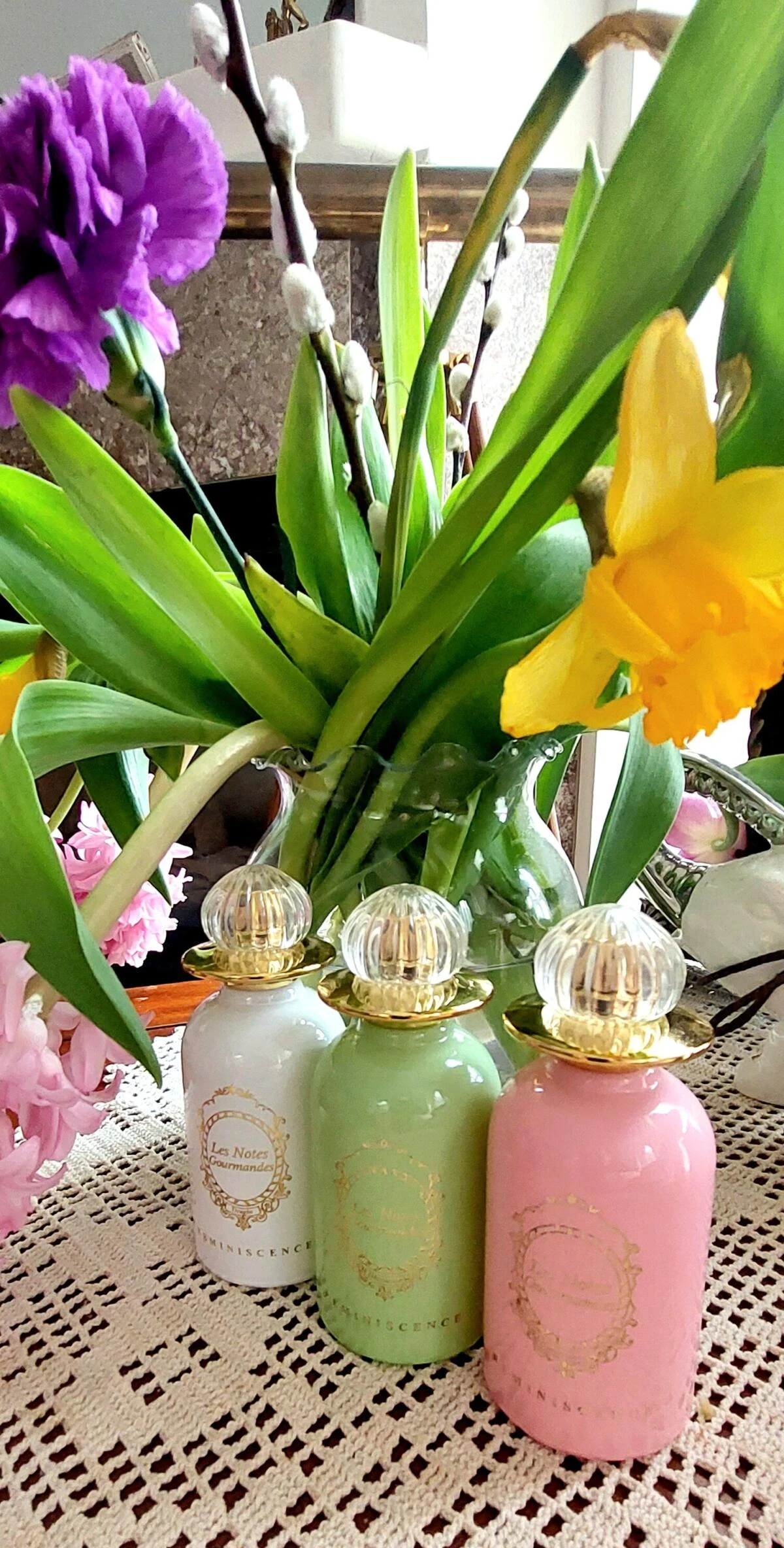 Tutto è così tenero: scatola rosa con lettere dorate, flaconcino pesante con nastro ocra e il profumo. Non riesco a distinguere tutte le note, ma l’apertura è potente e riconosco gli agrumi e l’amandina. Quando si asciuga, è floreale e amandina, molto lineare. Mi riporta ai ’90, quando mia zia mi regalava profumi Avon, quelli con l’angelo di vetro opaco. Proiezione bassa, a mezz’ora è a raso di pelle, ma è un tesoro trovato a caso. Grazie all’amica che me lo ha venduto, rivivo un prezioso ricordo olfattivo