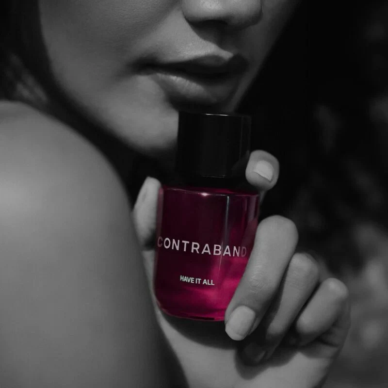 Have it all di Contraband è un profumo per donna appartenente alla famiglia olfattiva floreale-fruttata. Questa creazione, mai prima vista sul mercato, è stata lanciata nel 2025. La sua piramide olfattiva si apre con note di testa di pepe rosa, mandarino e mela; al cuore, un'armonia di caramello, arancia, giglio del valle e rosa; e alla base, un fondo caldo di vaniglia e ambra.