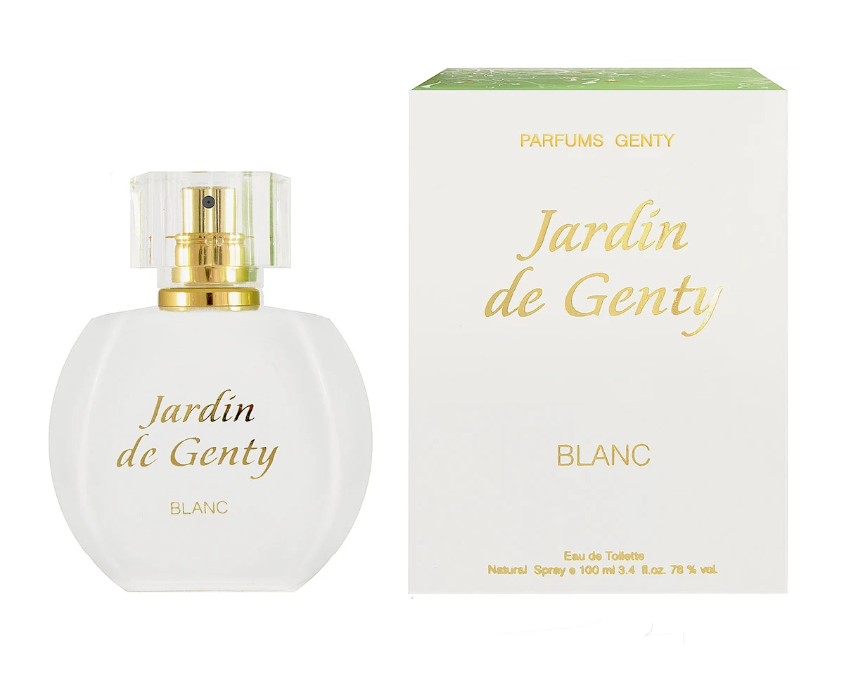 Jardin de Genty Blanc di Parfums Genty è una fraganza della famiglia olfattiva floreale muschiata legnosa per donne. Lanciata nel 2009, questa composizione presenta nelle note di testa mirtilli neri, note verdi e mandarino; nel cuore, fiori bianchi, pesca e rosa; e nel fondo, muschio, cedro e ambra.