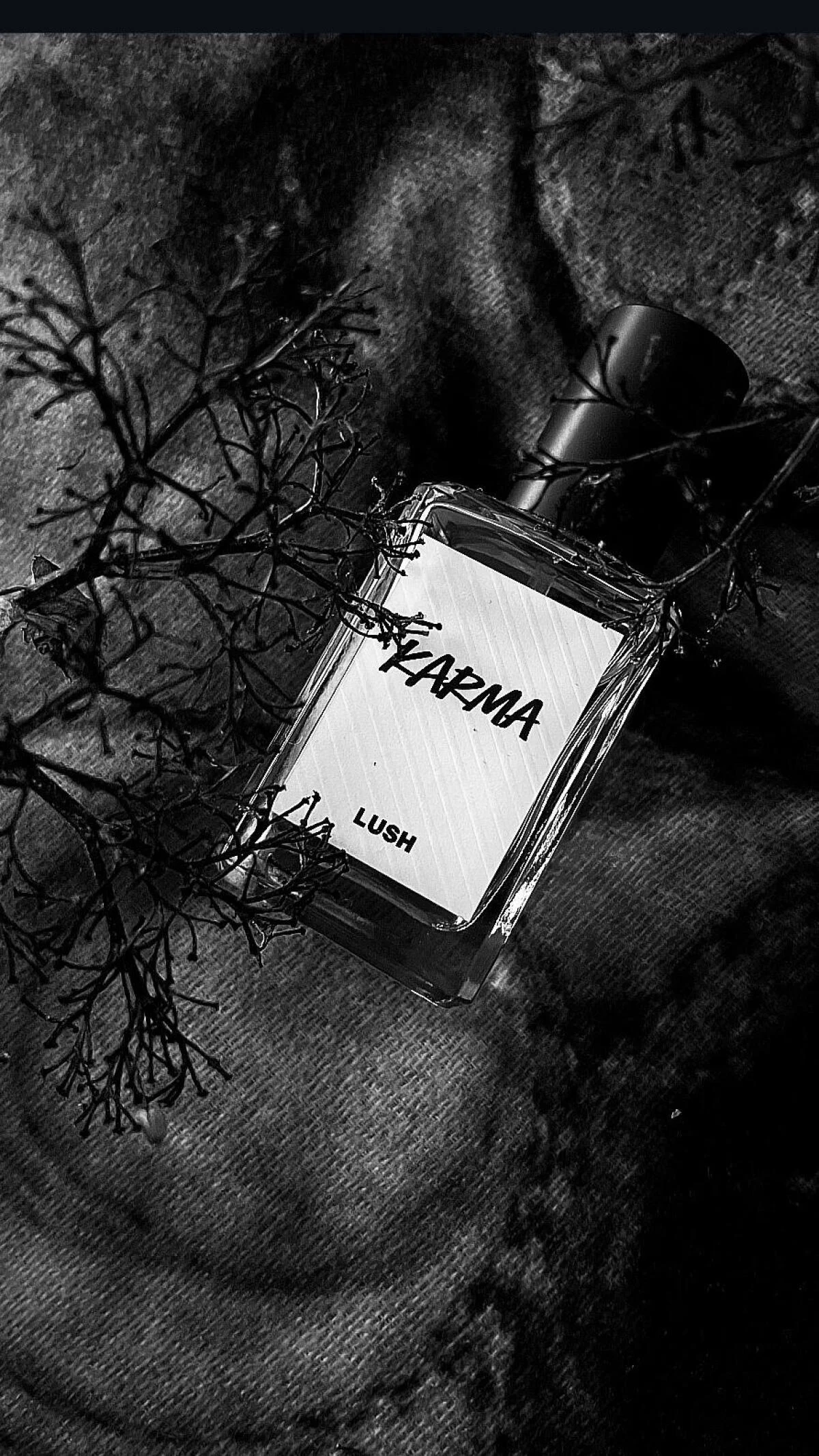Karma di Lush è un profumo della famiglia olfattiva citro-aromatica, adatto a uomini e donne. Lanciato nel 1995, questa composizione presenta nelle note di testa arancia, erba di limone (citronella) e lavanda. Il cuore del profumo rivela pino, limone (limone aspro) e casis (ribes nero), mentre le note di fondo si assestano con patchouli, resina di abete, elemi e cannella.