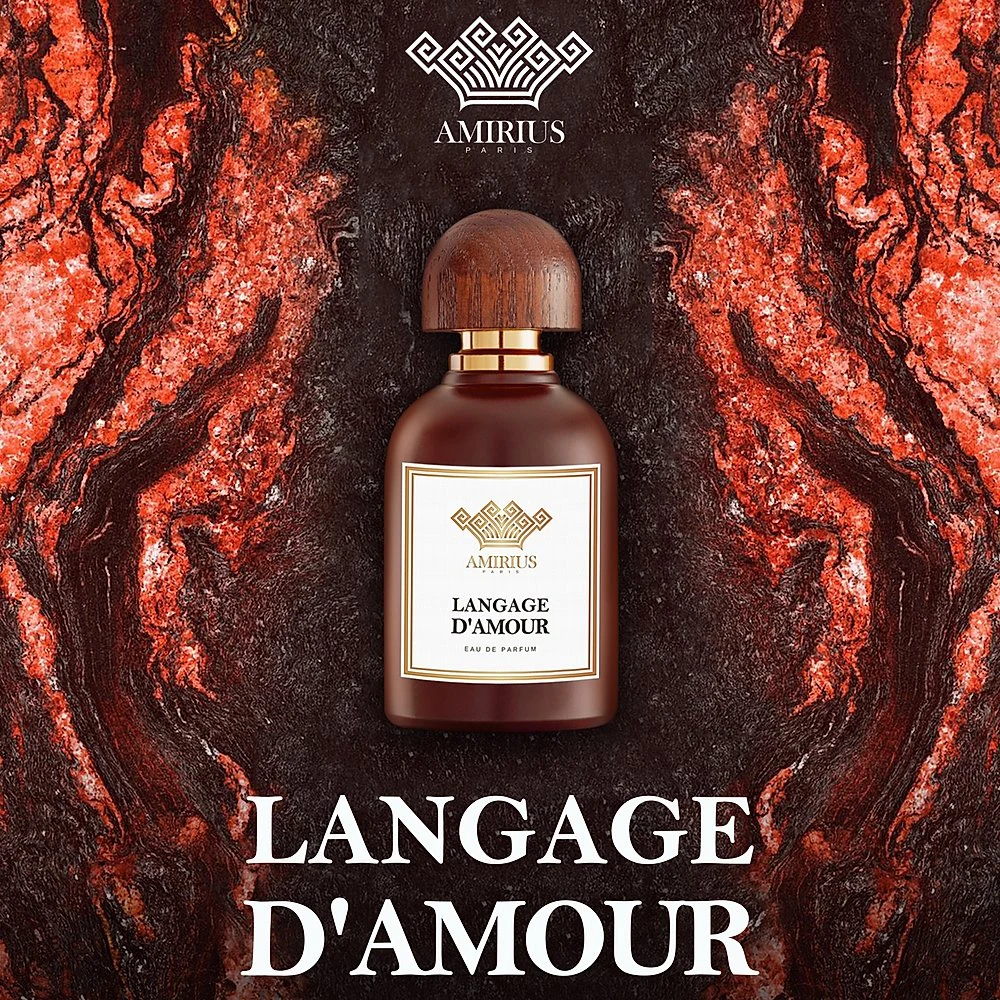 Langage D'Amour di Amirius è una fragranza della famiglia olfattiva chypre fruttata, per uomo e donna. Lanciata nel 2020, questa composizione presenta nelle note di testa mela e limone (limone acido); nel cuore, giglio del valle (mughetto) e melone; e si conclude con una nota di fondo di legno secco.