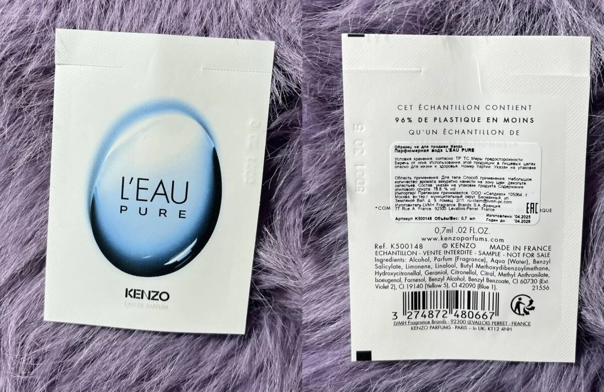 L'Eau Pure di Kenzo è una fraganza della famiglia olfattiva citrica aromatica, per uomo e donna. Questa creazione, lanciata nel 2025, è firmata dal naso Daphné Bugey. La sua piramide olfattiva si dispiega con note di testa di limone e mandarino; un cuore composto da aquozone e lavanda; e un fondo di ambra e sandalo.