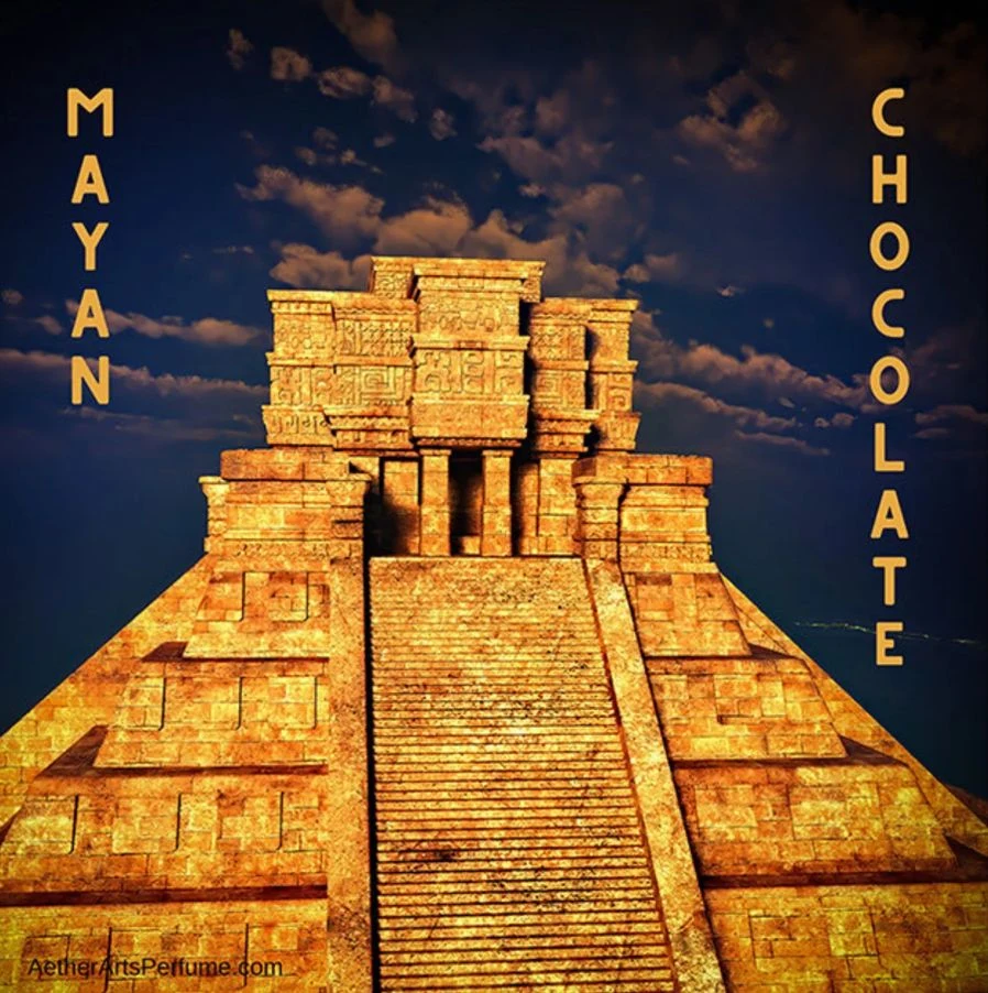 Mayan Chocolate di Aether Arts Perfume è una fraganza appartenente alla famiglia olfattiva unisex. Lanciata nel 2021, questa composizione è stata creata dal profumiere Amber Jobin. All'apertura, il naso viene immerso in un'esplosione di peperoncino e note speziate, che lasciano spazio a un cuore fresco e floreale, dove le note verdi e l'orchidea prendono il sopravvento. La scia si conclude con una base calda e avvolgente formata da cioccolato amaro, incenso e legni esotici.