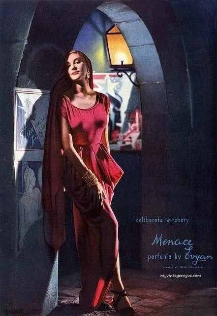 Menace di Evyan è un profumo della famiglia olfattiva chypre floreale per donne. Lanciato nel 1943, questa composizione presenta nelle note di testa arancia, limone e bergamotto. Il cuore del profumo rivela un'armonia floreale con rosa, gelsomino, ylang-ylang e fiore d'arancio. Le note di fondo si assestano su ambra, muschio di quercia, algalia e patchouli.