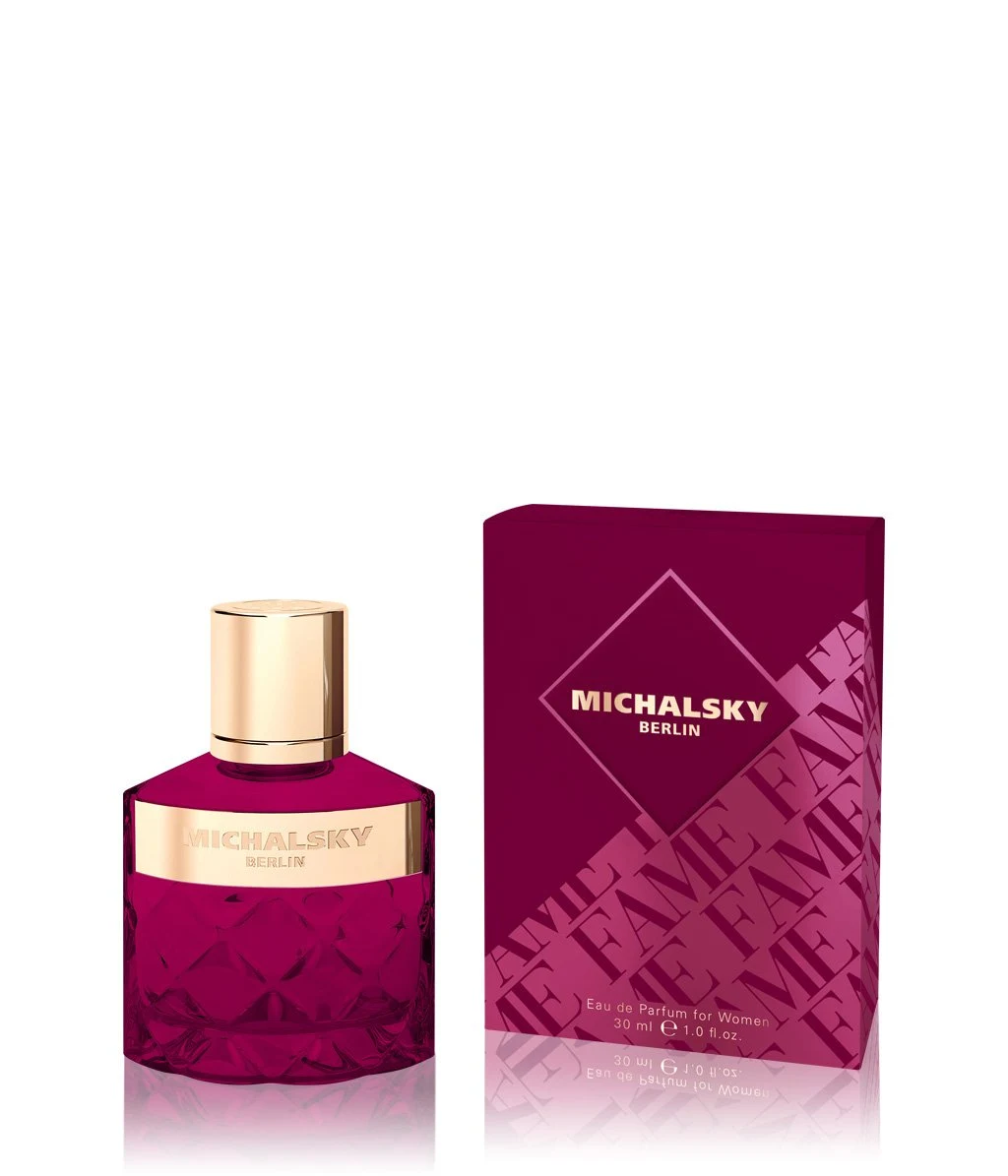 Michalsky Berlin Fame For Women di Michael Michalsky è una fraganza della famiglia olfattiva floreale fruttata gourmand per donne. Lanciata nel 2019, questa composizione presenta nei suoi accordi di testa bergamotto e mela; nel cuore, gelsomino, patchouli e fiore di arancio amaro; e nella base, vaniglia, praliné, legno bianco e ambra.
