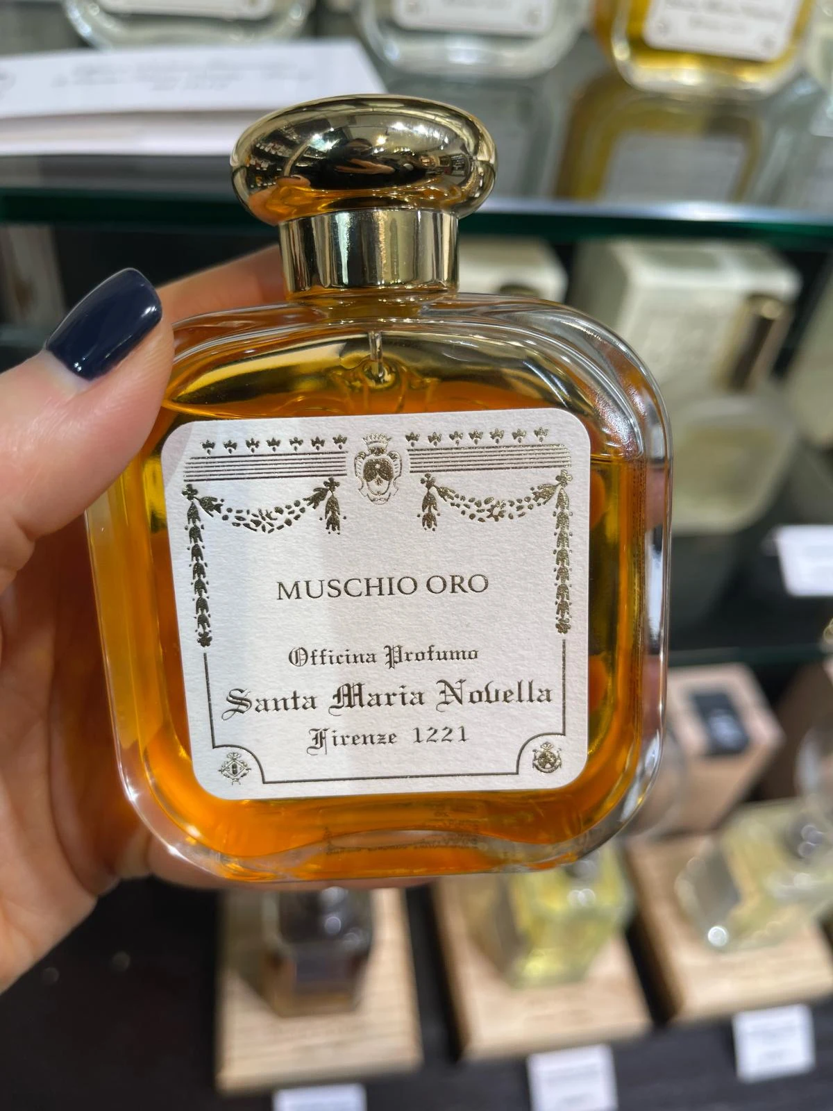 Muschio Oro di Santa Maria Novella è un profumo appartenente alla famiglia olfattiva muschiata floreale legnosa, adatto a uomini e donne. Le note di testa sono fiori bianchi; le note di cuore includono giglio del valle, iris, neroli e ylang-ylang; le note di fondo sono muschio, fava tonka, cedro e vaniglia.
