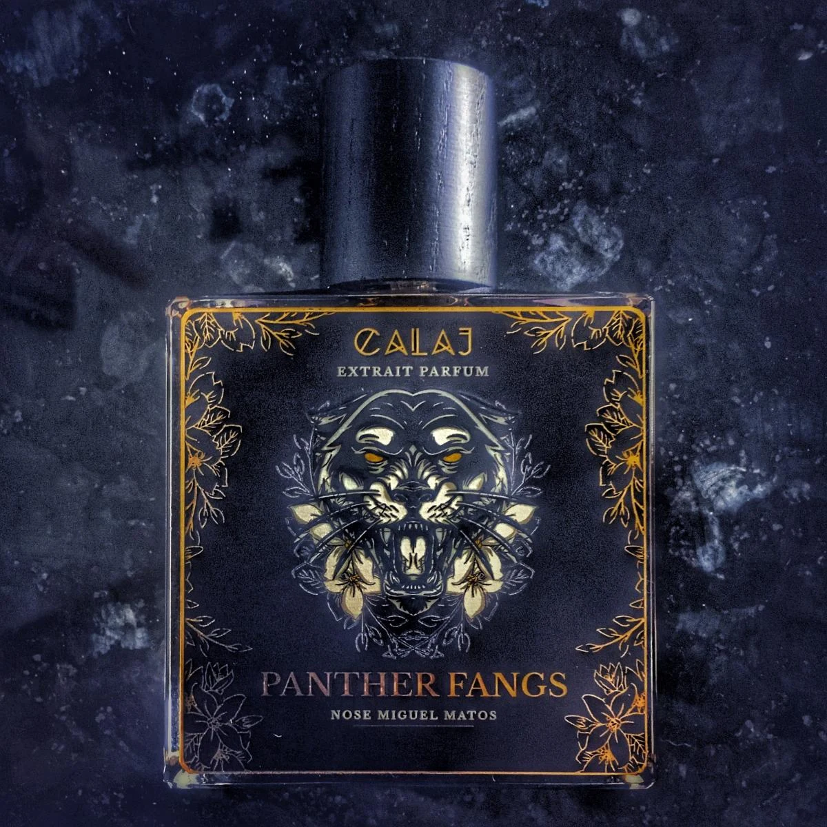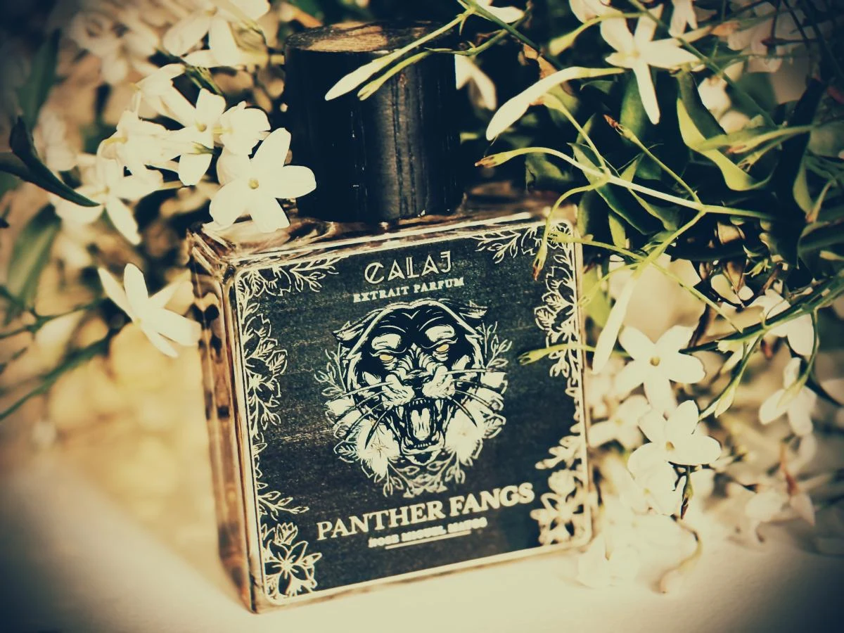 Panther Fangs di Calaj è un profumo della famiglia olfattiva floreale orientale, adatto a uomini e donne. Lanciato nel 2022, la profumazione dietro questa composizione è di Miguel Matos. Le note di testa sono mandarino e bergamotto; le note di cuore, gelsomino, buchú e ambra grigia; le note di fondo, ambra grigia, algalia, fumo, ambra, vaniglia e fava tonka.