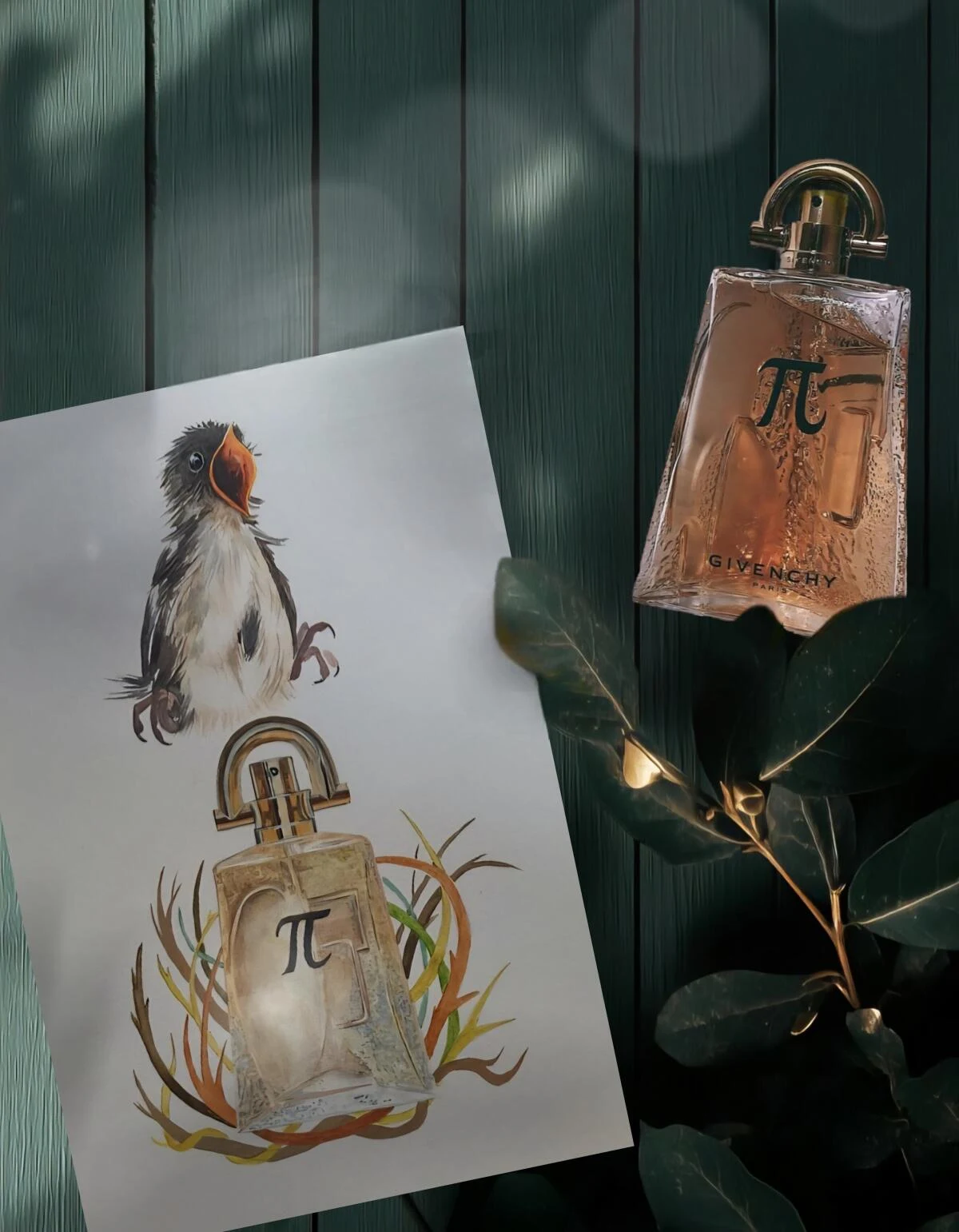 Pi di Givenchy è un profumo della famiglia olfattiva orientale legnoso per uomo. Lanciato nel 1998, questa composizione è stata creata dal profumiere Alberto Morillas. Le note di testa rivelano mandarino, dragoncello, rosmarino e basilico; il cuore svela anice, neroli, geranio e giglio del valle (mughetto); mentre le note di fondo completano la struttura con vaniglia, mandorla, fava tonka, benzoè e cedro.