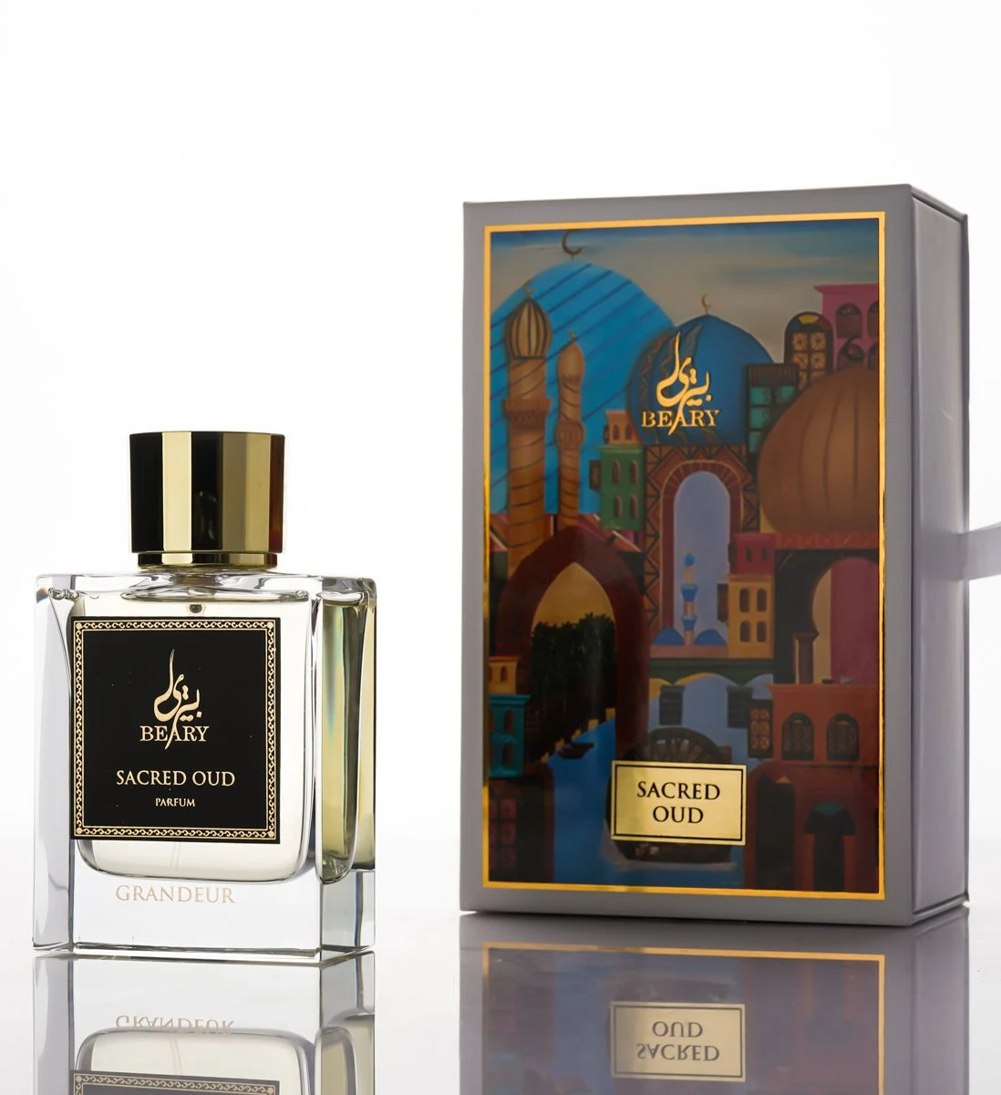 Sacred Oud di Beary è una fraganza appartenente alla famiglia olfattiva unisex. La composizione, creata da Mahran S Ali e Fahran S Ali, apre con un vibrante accostamento di rosa e lampono. Il cuore rivela l'eleganza dell'incenso, dello zafferano e del benzoé, mentre la base si fonda sulla legna di oud, sul betulla e sull'ambra.