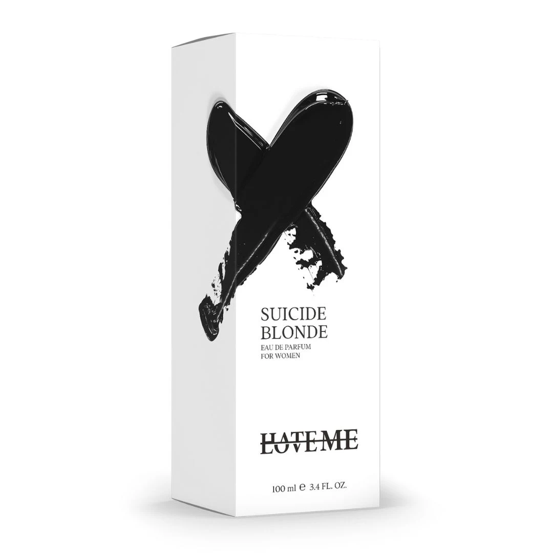 Suicide Blonde di Hate Me Love Me è un profumo appartenente alla famiglia olfattiva floreale fruttata gourmand per donna. Lanciato nel 2022, questa composizione porta la firma olfattiva di Mike Arens. La nota di apertura rivela la freschezza dell'arancia amara, che lascia spazio al cuore floreale della peonia. Il fondo si costruisce su una base calda e avvolgente di vaniglia, eliotropo, fava tonka e cashmere.