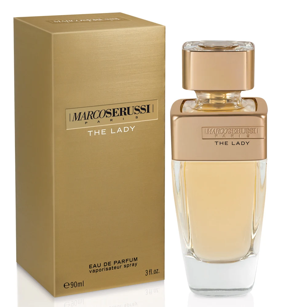 The Lady di Parfums Marco Serussi è una fraganza della famiglia olfattiva floreale fruttata gourmand per donne. Lanciata nel 2016, questa composizione presenta note di testa di pera, lamponi neri, bergamotto e pepe rosa; un cuore di praliné, freesia e giglio del valle; e un fondo che evoca vaniglia, patchouli, legno di cashmir, ambra e amberwood.