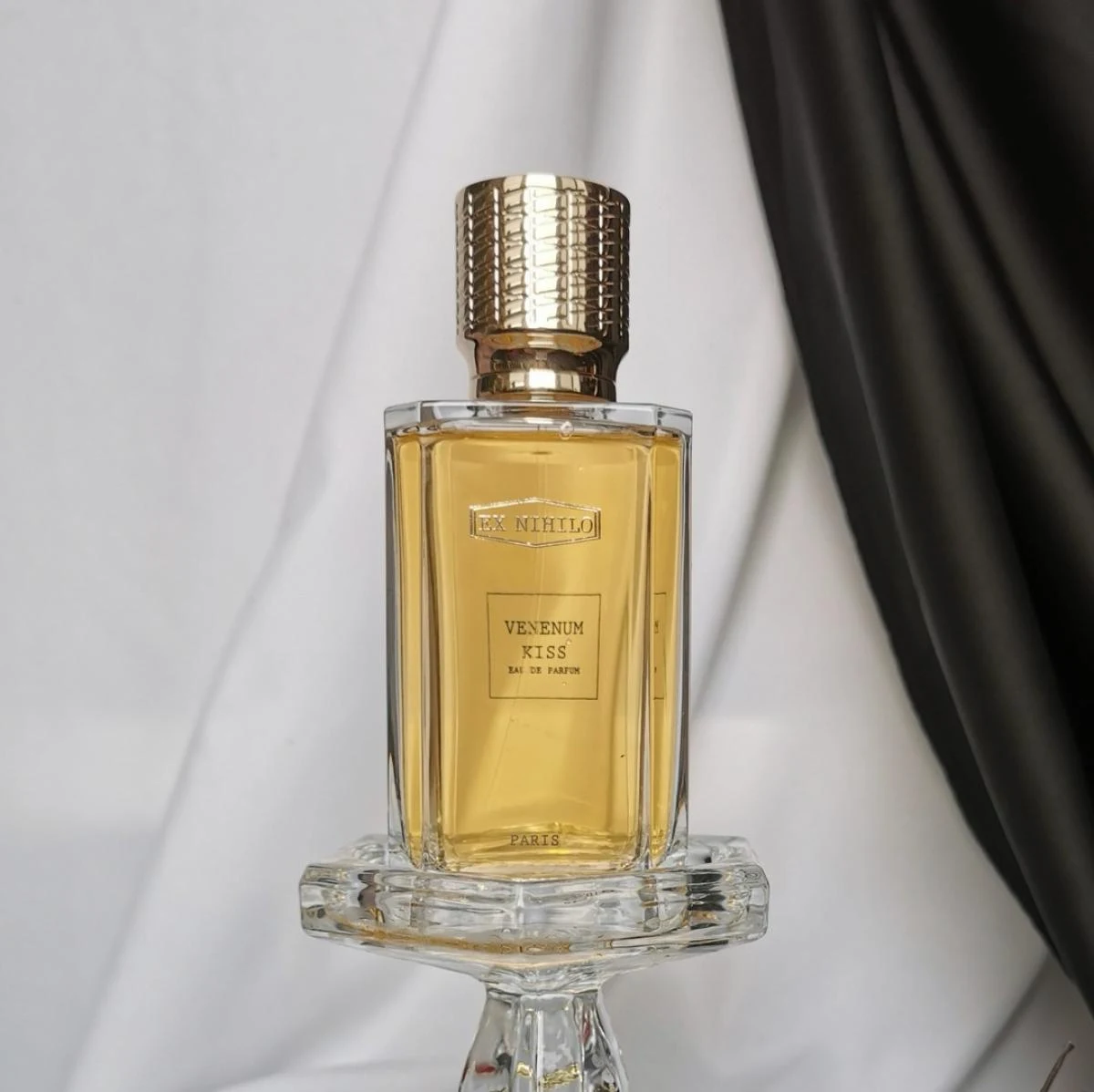 Venenum Kiss di Ex Nihilo è una fragranza della famiglia olfattiva unisex. Lanciata nel 2015, la profumatrice dietro questa composizione è Quentin Bisch. Le note di testa sono zafferano, noce moscata e neroli; le note di cuore, rosa, ambra e origano; le note di fondo, vaniglia, sandalo e storace.
