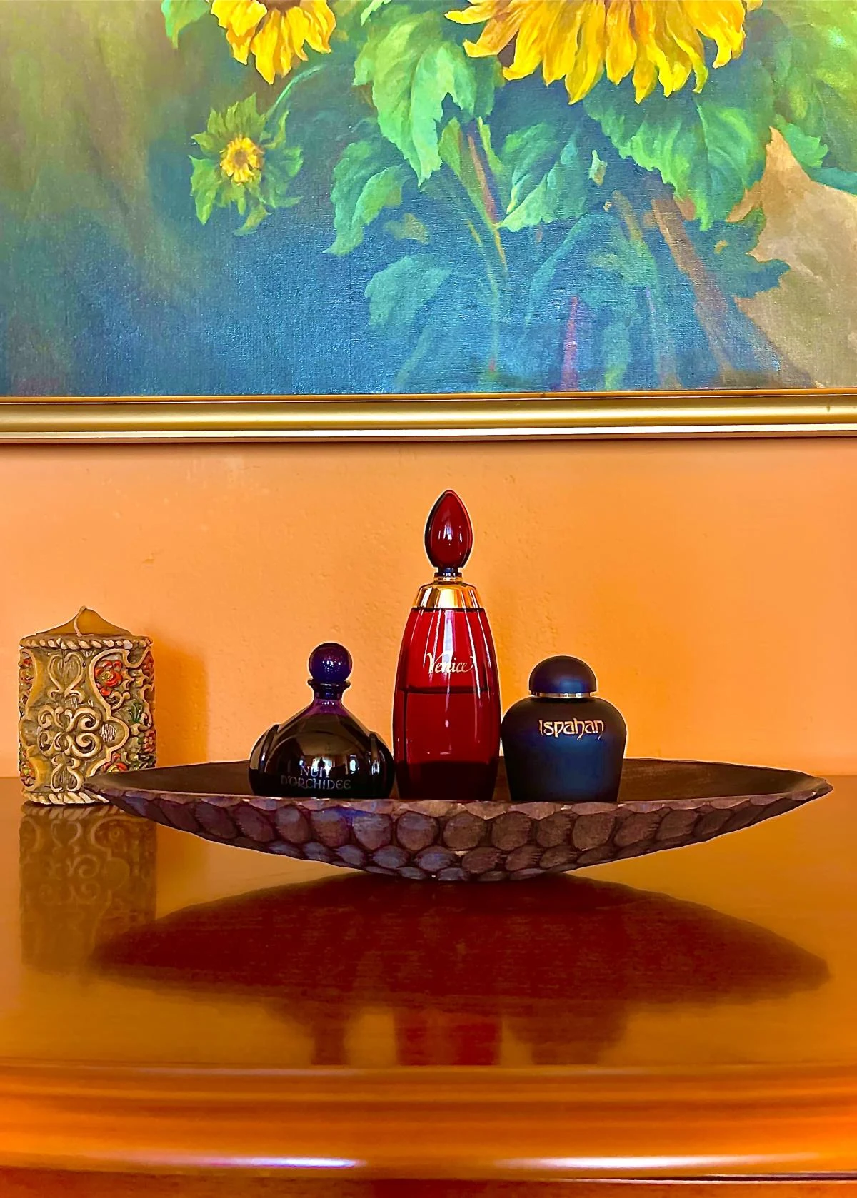 Yves Rocher produceva un tempo gioielli olfattivi e Venise era uno dei migliori, a mio umile parere. Si pagava un prezzo onesto per un orientale lussuoso e duraturo (a differenza delle offerte scandalose che vedo oggi sui rivenditori), che allora doveva essere davvero al suo meglio. Oggi non aver paura di confrontarlo con case più costose. La bergamota fresca e aspra dell’inizio si nota ancora nel mio vecchio flacone, ma è ormai velata dalla cannella e lascia spazio a un cuore di vaniglia dolce, cremoso e morbido. Adoro lo zafferano, quel tocco polveroso e secco, e le note legnose piuttosto presenti. Senza bruschi cambi o asprezze, mi piace questo viaggio negli anni ’80, che considero l’epoca d’oro della profumeria dai miei occhi. Fiori e spezie sono in sintonia perfetta e il cuore si fonde quasi impercettibilmente in un fondo animale leggero, amichevole, terroso e muschioso, che combina perfettamente con la bottiglia. Un lontano ricordo di Guerlain… Samsara? Shalimar? Ma Venise rimane indipendente se lo confronti con gli orientali classici. Manca del fumo vanigliato di Shalimar, del cuoio e del contrasto verde di Le Must de Cartier. Anche se contiene civetta, non spaventa e non sa di fiori secchi troppo speziati. Venezia è molto più morbida delle altre, ma totalmente utilizzabile oggi. Nessuno si disturba percependo quel tocco croccante di vaniglia e sandalo, addolcito dalla resina. Le note di testa sono molto mature, ricordano frutta secca, e un po’ di miele accompagna l’inizio senza diventare appiccicoso. Qualità notevole per Venise: se lo trovi a un prezzo digno, ne vale la pena nei mesi più freddi. (Recensione basata sul flacone nella foto).